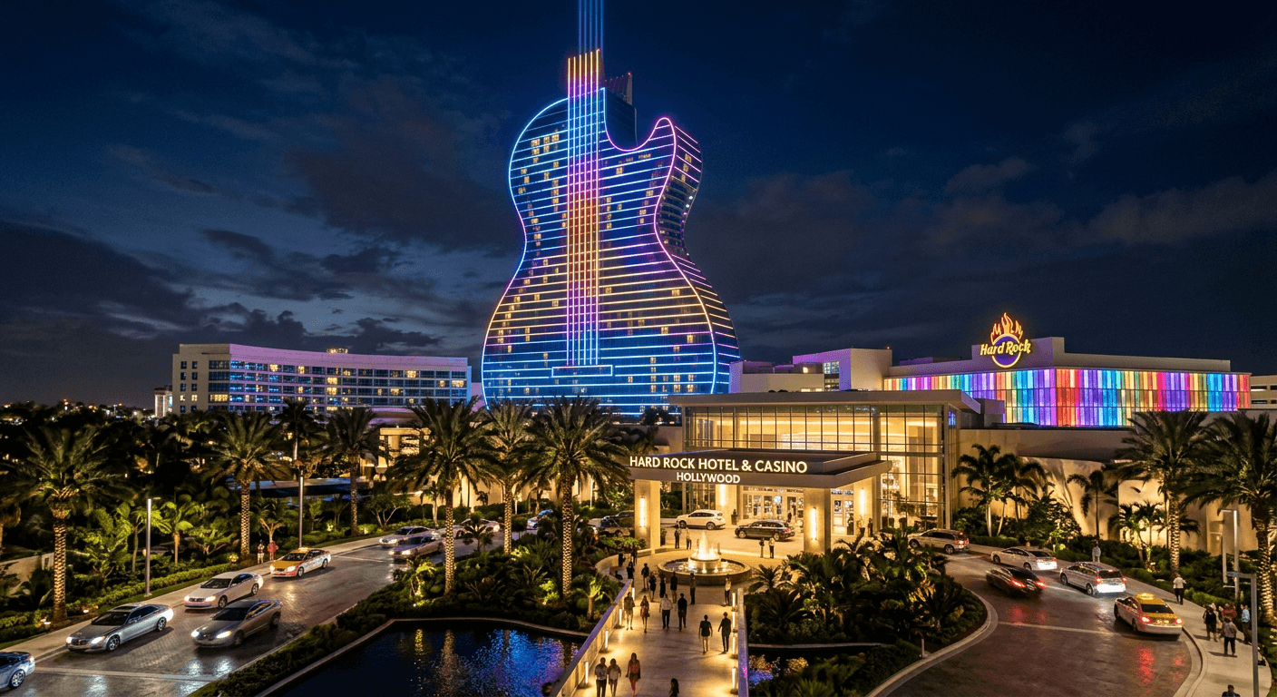 Hollywood sits at the crossroads of Fort Lauderdale and Miami — the Broadwalk, Seminole Hard Rock Casino, and Young Circle give it three distinct nightlife zones that party buses connect nightly.
